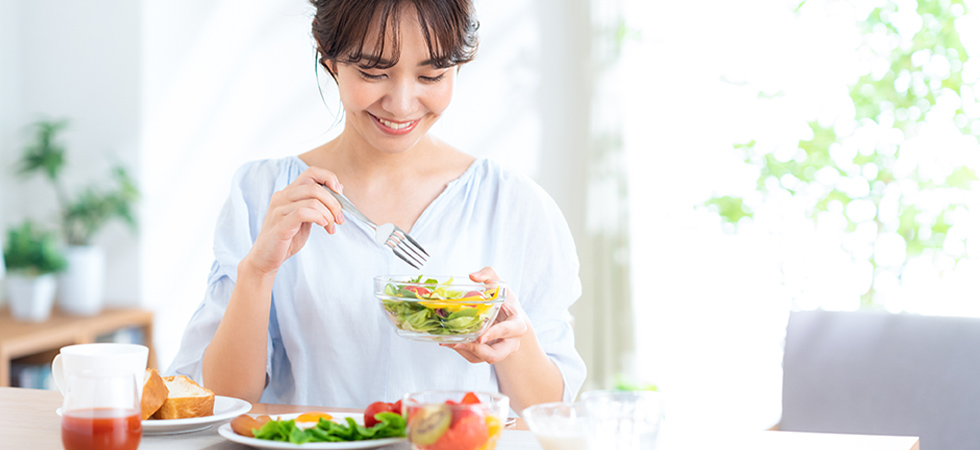 過度な食事制限で痩せる!と考えている方も多いようです。しかし、急激に食事量を減らすと、ダイエットが長続きしないばかりか、ダイエットしにくい身体をつくることにつながります。人間は飢餓状態から身体を守るために人間に備わっている機能を発揮します。具体的には摂取エネルギーが少ない状態が続くと、人間の身体は消費エネルギーを抑えて省エネモードに入るため、やせにくくなります。さらに、省エネモードのときに食事量を戻すと、身体は次の飢餓に備えて栄養を蓄えようとし、リバウンドするのです。このように、過度な食事制限で痩せるというのはある種間違った考え方かもしれません。
