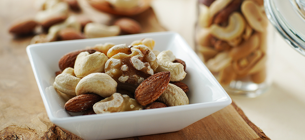 コレステロールを減らす働きのある不飽和脂肪酸が多く含まれ、たんぱく質や糖質がバランスよく含まれた栄養価の高い食材であるナッツ類。血糖値の上昇も緩やかで、腹持ちもよいので、ダイエット中の間食にはおすすめの食材のひとつです。また老化や免疫力低下を防ぐ効果も期待できるため、ダイエット中でなくても摂りたい食材です。ただし、ナッツ類はカロリーが高めなので、食べ過ぎに注意しましょう。食べ過ぎには注意です。